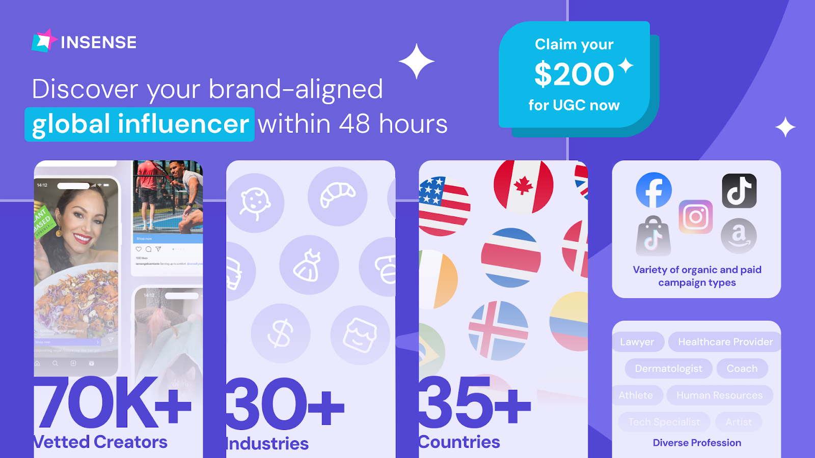 You need Insense’s carefully vetted marketplace of 68,500+ UGC creators and micro-influencers from 35+ countries across Europe, the USA, Canada, Australia, and Latin America.
